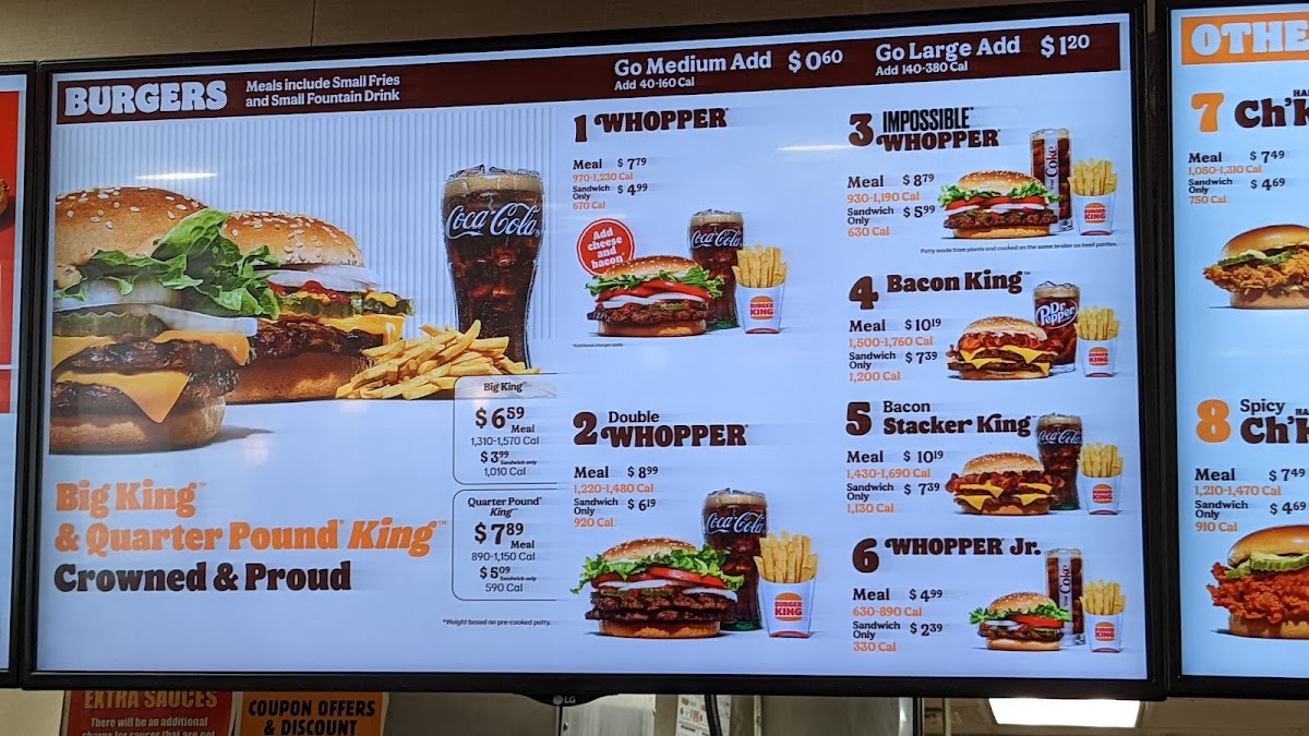 (4) Whopper Sandwiches or Original Chicken Sandwiches, (4) Medium Fries or Medium Onion Rings (Comes with one Zesty dipping sauce), (1) 8 Pc. Nuggets (Comes with choice of up to two sauces)