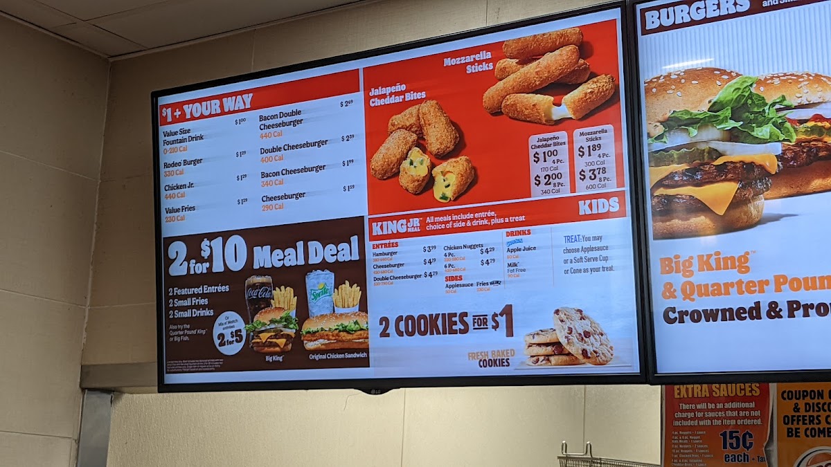 (2) Whopper Sandwiches or Original Chicken Sandwiches, (2) Cheeseburgers, (4) Medium Fries or Medium Onion Rings (Comes with one Zesty dipping sauce), (1) 8 Pc. Nuggets (Comes with choice of up to two sauces)